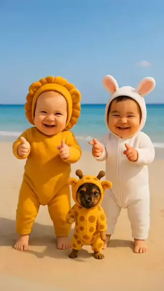 Cute babies dancing on the beach with a dog 🥰😂 #baby #funnydance #babydance #funnybaby #kidsoftiktok