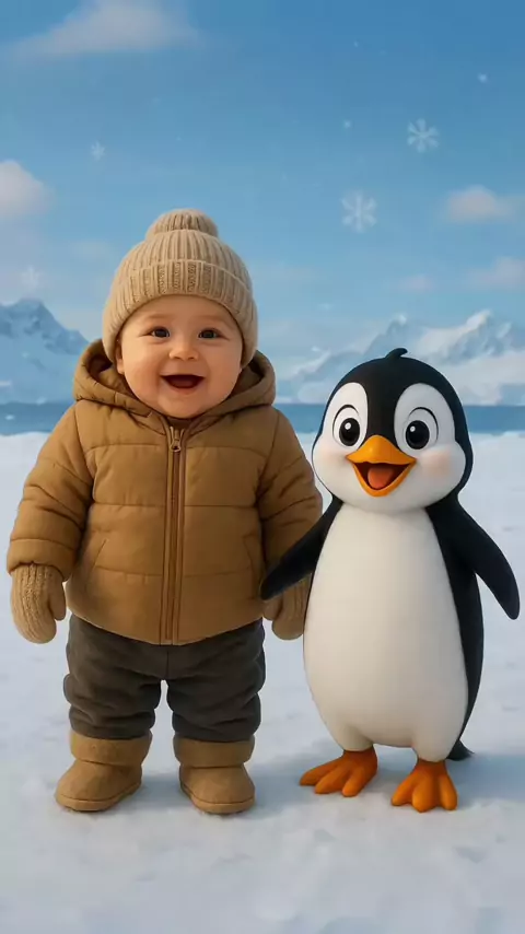 CUTE BABY DANCING WITH PENGUIN IN THE SNOW 🐧❤️👶 #baby #kidsoftiktok #funnybaby #funnydance #babydance