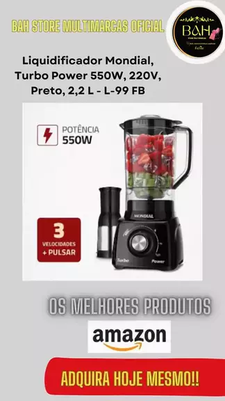 Liquidificador Mondial, Turbo Power 550W, 220V, Preto, 2,2 L - L-99 FB ✅"Aqui, você compra com total segurança! 🔒 Sou associada da Amazon, uma das maiores e mais confiáveis plataformas do mundo. Todos os produtos que indico são 100% originais e com garantia. Pode comprar tranquilo! 🛒✅" 📲 Acesse o link na descrição agora! HTTPS://AMZN.TO/41XOCCN #virali #amazon #brasil #fyp #kwai