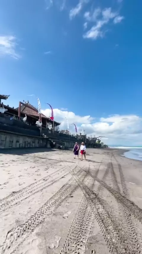 wisatawan asing tampak sedang menikmati keindahan alam Pantai Keramas, sebuah pantai di Kabupaten Gianyar yg ombaknya sering digunakan untuk selancar air