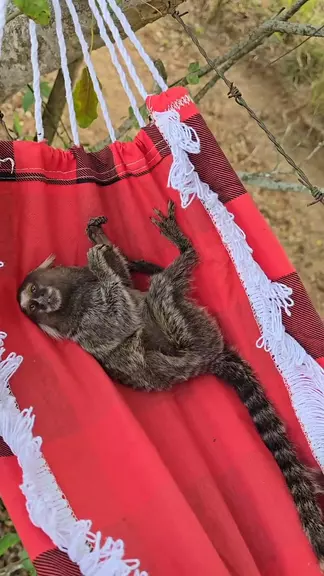 Olha como é ousado o sagui na rede.