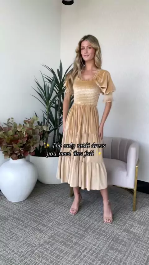 Our Vivaldi Smocked Velvet Midi Dress is flattering, comfortable and available in so many gorgeous colors!#falldresses#velvetdress#mididress#womensfashion