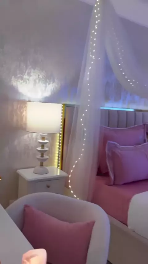 Inspiração para o seu quarto dos sonhos 🛏️✨ Olha que dica legal dessas rosas brancas em volta do espelho, a iluminação atrás ajuda a realçar a beleza das flores e a luz não fica tão forte no rosto. As rosas na prateleira do lado deram o charme 🌼🌺 #quarto #quartodemenina #bedroom #decorado #decoraçao