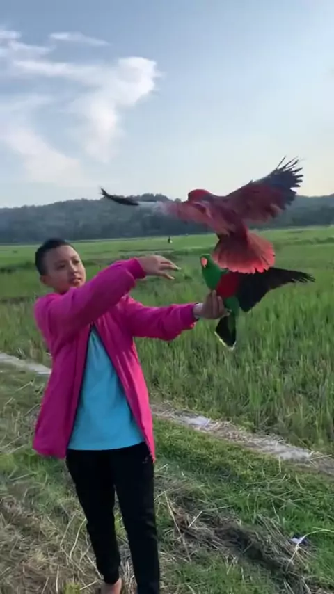 Ngabuburit bareng pasukan eclectus Indonesia π##macaw#nuribayan#freeflyingparrot#freeflightbirds#jogja#freeflyparrot