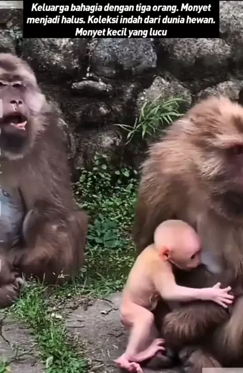 Keluarga bahagia dengan tiga orang. Monyet menjadi halus. Koleksi indah dari dunia hewan. Monyet kecil yang lucu