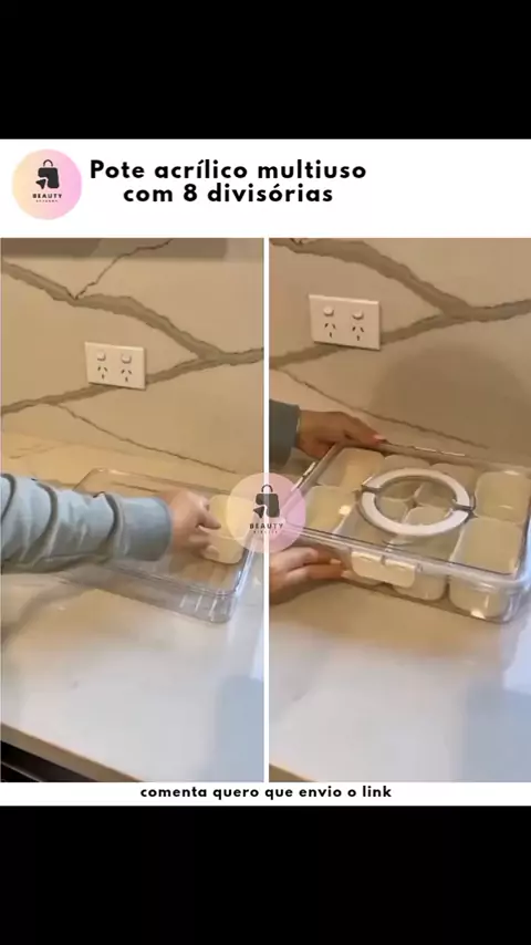 Simples, prático e lindo ✨pote de acrílico com 8 divisórias, comente quero que envio o link #organization #praticidade #cozinha #foryou