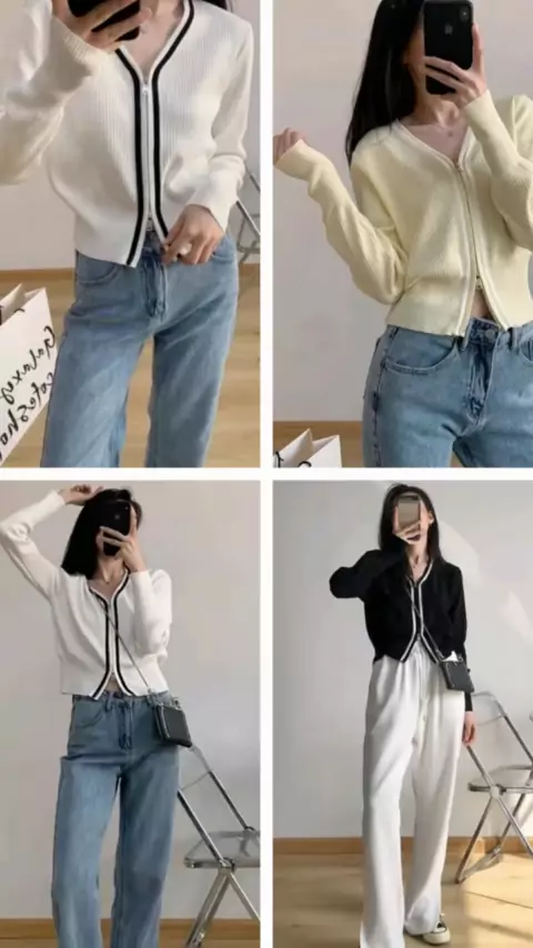 #ad Korean Outer Knit Zip Shirt Blouse Long Sleeves Atasan Kemeja Resleting (📍Link no. 6) #koreanouter #outerknit #blousewanita #kemejawanita #koreastylemurah