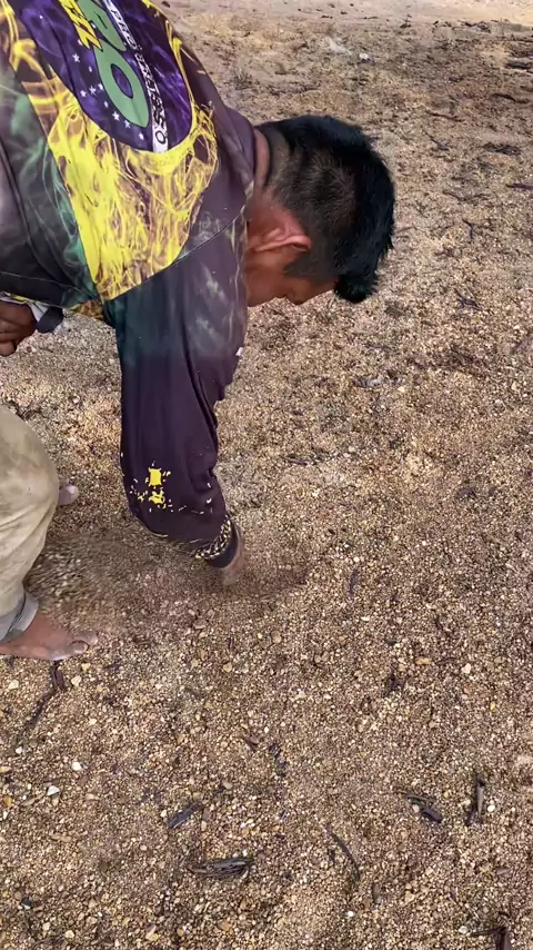 Tirando ovo de tracajá