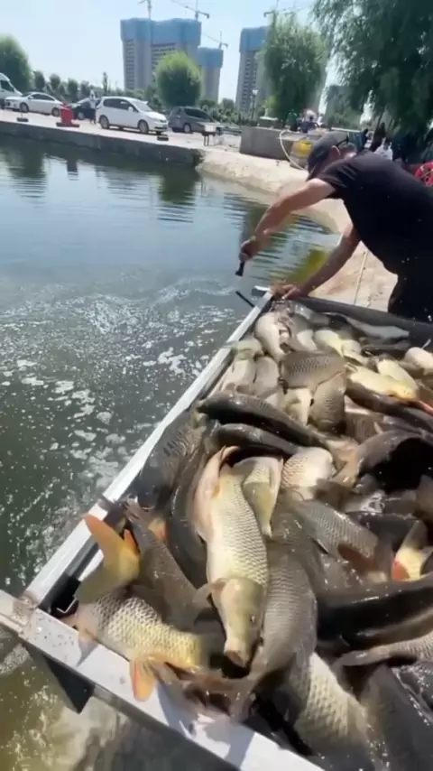 ele levou os peixes para o lago da cidade