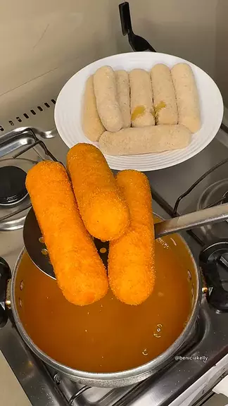 Fritando Enroladinhos de Salsicha 😋 #Enroladinho #kwai