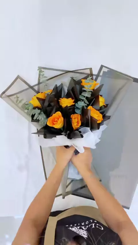 Teknik wrapping versi terbaru. Ala-ala ferrero gitu ya##florist#buket#bouquet#mawar#rose#freshflower#orange#GenshinImpact34#wrapping#bunga#tutorial