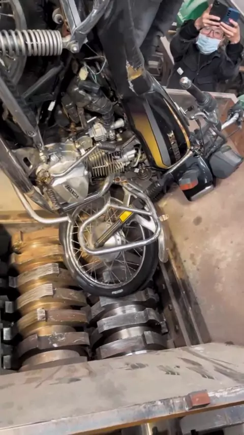Mesin penghancur. Logam Mesin penghancur. Plastik Mesin penghancur Mesin penghancur menantang sepeda motor Honda lima domba