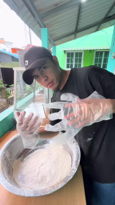 Sempat pakai sarung tangan plastik setiap kali proses pengadukan ayam tepung selalu jebol,makanya sekarang bangyud ganti pakai sarung tangan hitam berbahan nitril,bahannya lentik,lembut dan pas di tangan,yg pasti proses pengolahan makanan jadi lebih higienis kalo pake sarung tangan kyk gini