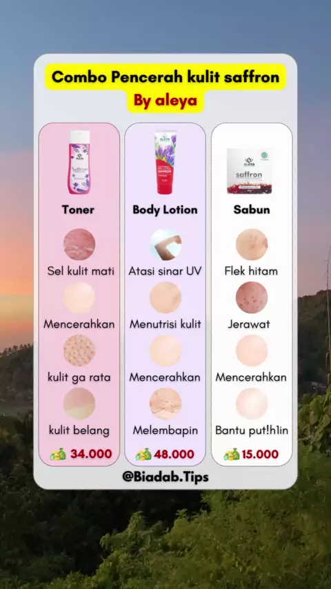 3 Combo pencerah dari aleya skincare #sabunsaffron #tonersaffron #bodylotionaleya #aleyaskincare #aleyaskincareofficial