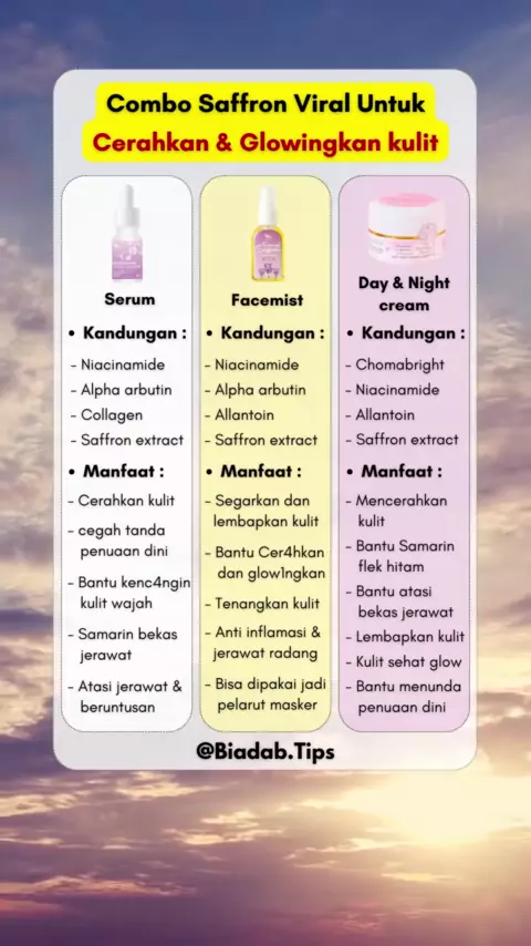 triple combo vies beauty saffron #viesbeauty #serumsaffron #facemistsaffron #whiteningbooster #creamviesbeauty #tipskulitsehat