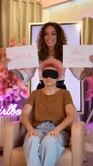 Nunca tinha feito um cabelo assim antes e realizei o sonho da Paloma na transformação às cegas. 😍😍😍 teriam coragem?😱 #cachos #platinado #ascegas
