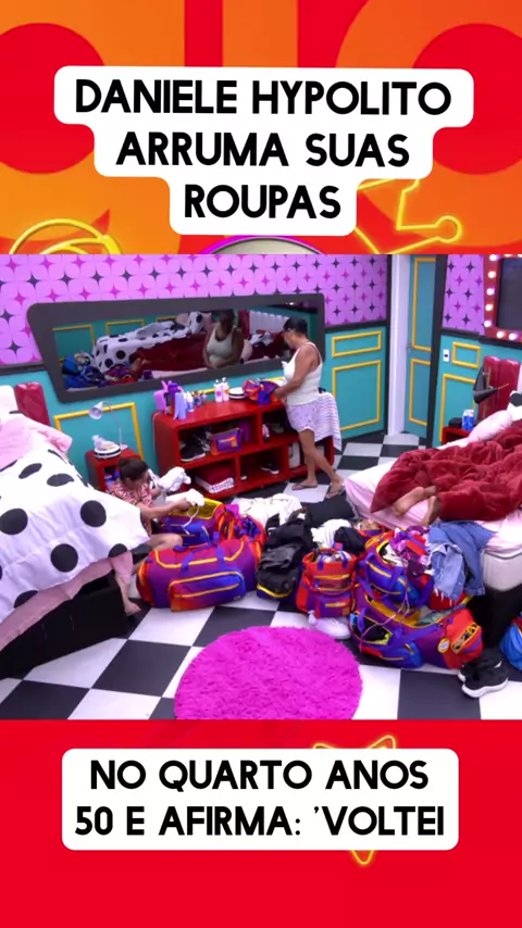 Daniele Hypolito arruma suas roupasno Quarto Anos 50 e afirma: 'Voltei#reality #bbb25 #kwainobbb #fogonoparquinho