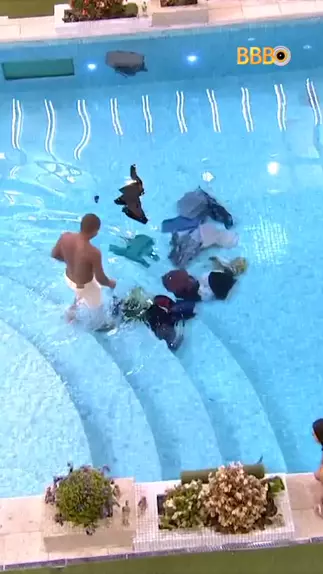 Davi pegou as roupas na piscina ap贸s Leidy Elin jogar elas no local. 馃憖 #RedeBBB #BBB #BBB24
