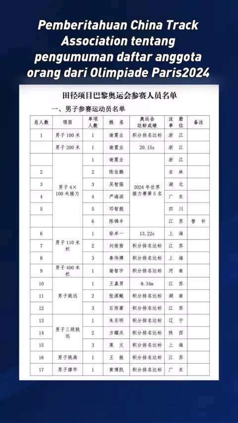 Pemberitahuan dari China Track Association pada pengumuman daftar anggota orang dari Olimpiade Paris 2024 untuk China Track # China Track Team # Paris Olympic Games