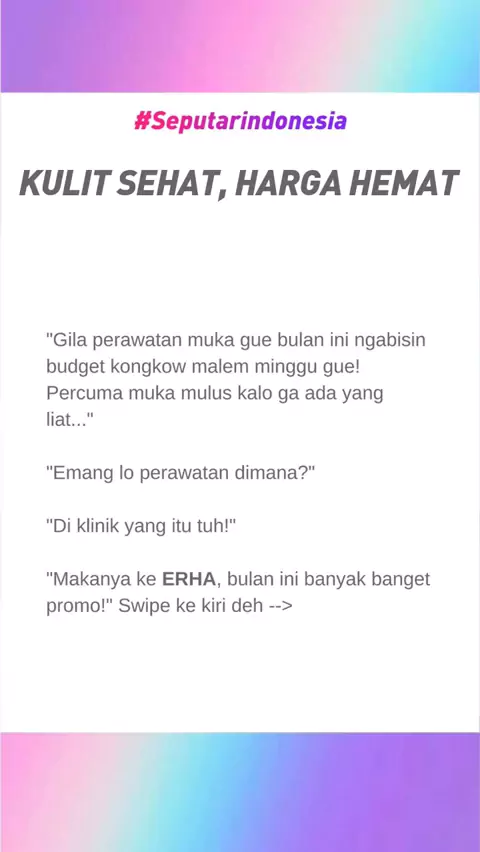 KULIT SEHAT, HARGA HEMAT! Dapatkan harga hemat hingga 15% untuk setiap pembelian treatment dan produk di ERHA Clinic terdekat. Hemat 15% untuk Hair Grow Activation Therapy Hemat 10% untuk Hydra Facial Hemat hingga 15% untuk produk bebas tanpa resep Gratis E-Voucher Rp 50,000 untuk setiap pembelian Single All Face Chemical Peeling Gratis Tote Bag dan Hand Sanitizer untuk setiap transaksi sampai dengan Rp 1,000,000 Yuk rawat kulit sehatmu dan nikmati harga hematnya hingga 30 Juni 2021 Have a Healthy 更多