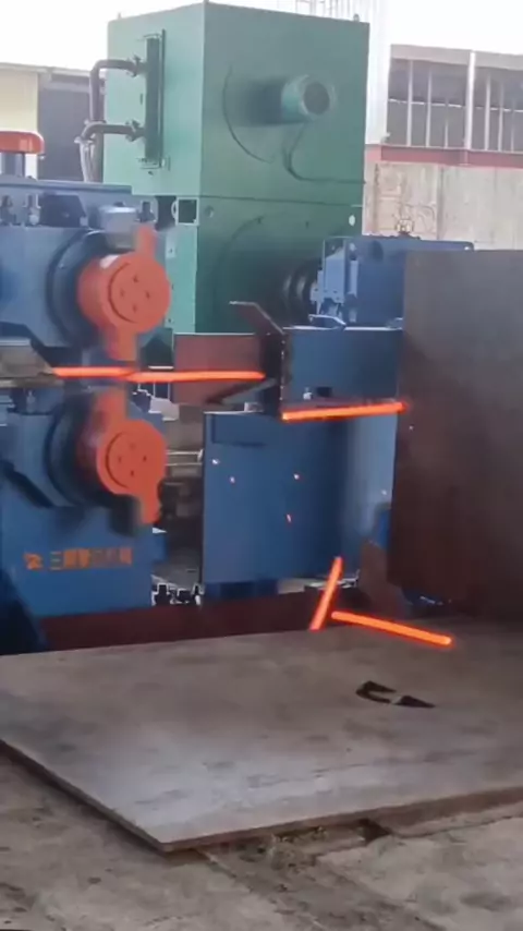 Two blades are fixed radially on two rotating rollers. The rolling piece moving along the roller table is sheared by two blades that meet as it passes between the two rollers#forging#Furnaces#steelmaking#Blacksmith#steel