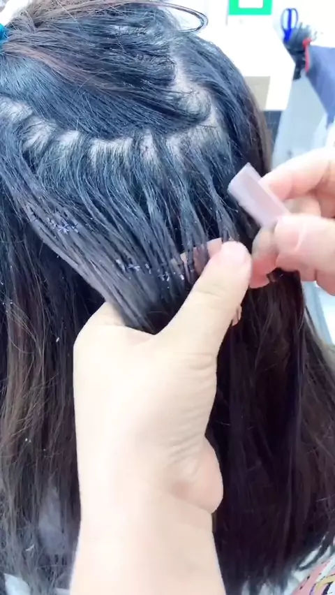 Ekstensi rambut kabel kristal dengan kang masih sangat tegak. ingin tahu cara merawatnya. ayo. ikuti aku.