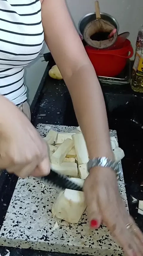 Meu cunhado achou que eu era obrigada a descascar macaxeira pra ele #culinaria #macaxeira #fritas #maisviews #foryou