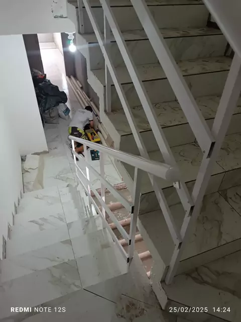 trabalho de hoje corrimão pra escada em alumínio branco