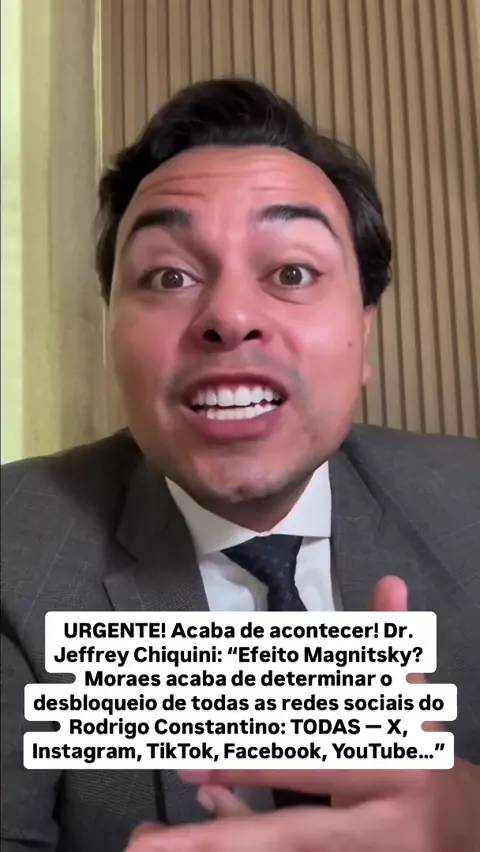 URGENTE! Acaba de acontecer! Dr. Jeffrey Chiquini: “Efeito Magnitsky? Moraes acaba de determinar o desbloqueio de todas as redes sociais do Rodrigo Constantino: TODAS - X, Instagram, TikTok, Facebook, YouTube...”