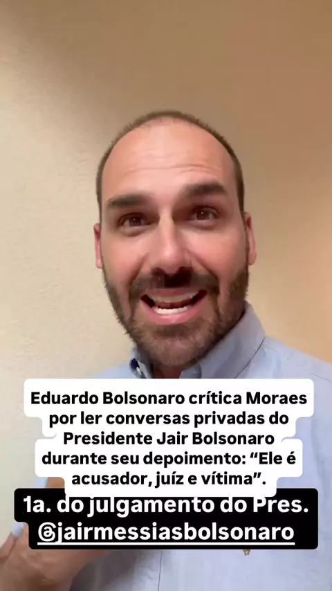 Eduardo Bolsonaro critica Moraes por ler conversas privadas do Presidente Jair Bolsonaro durante seu depoimento: “Ele é acusador, juíz e vítima”.