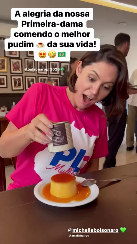 A alegria da nossa Primeira-dama comendo o melhor pudim 🍮 da sua vida! 😍🤣🇧🇷