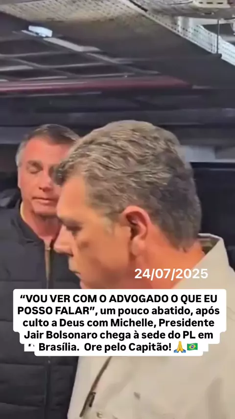 “VOU VER COM O ADVOGADO O QUE EU POSSO FALAR”, um pouco abatido, após culto a Deus com Michelle, Presidente Jair Bolsonaro chega à sede do PL em Brasília. Ore pelo Capitão! 🙏🇧🇷