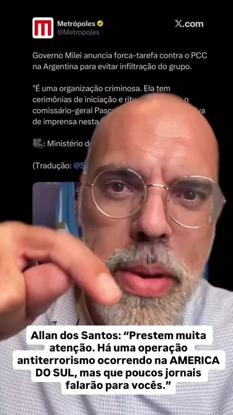 Allan dos Santos: “Prestem muita atenção. Há uma operação antiterrorismo ocorrendo na AMERICA DO SUL, mas que poucos jornais falarão para vocês.”