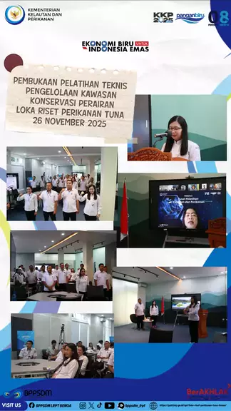 Momen Pembukaan Pelatihan Teknis Pengelolaan Kawasan Konservasi Perairan di Loka Riset Perikanan Tuna, 26 November 2025! Loka Riset Perikanan Tuna(LRPT) bekerja sama dengan Balai Pendidikan dan Pelatihan Aparatur Sukamandi (BPPA) menyenggarakan kegiatan Pelatihan Teknis Pengelolaan Kawasan Konservasi Perairan . Pelatihan dilaksanakan secara blended learning selama 4 (empat) hari. ini merupakan bagian dari upaya Badan Penyuluhan dan Pengembangan Sumber Daya Manusia Kelautan dan Perikanan (BPPSDM)