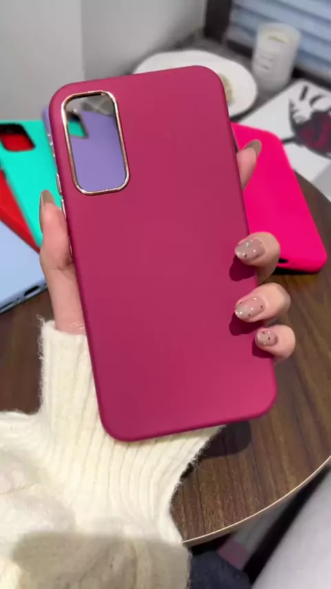Capa para telemóvel simples de silicone líquido à prova de quedas com botão de metal 3 em 1 #silicone #Capa