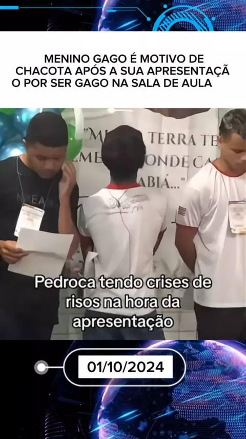MENINO GAGO É MOTIVO DE CHACOTA APÓS A SUA APRESENTAÇÃO POR SER GAGO NA SALA DE AULA #Notícia #entretenimento #ultimanoticia #News #Escola