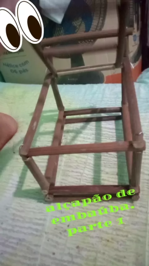 mostrando armação de alçapão de embaúba...