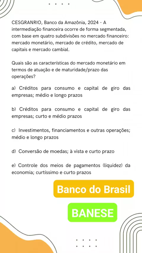Questão Cesgranrio Conhecimentos Bancários #concurso #cesgranrio #bancodobrasil #Banese