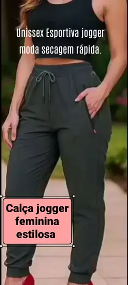 Calça jogger tendência moda luxo feminina estilosa esportiva confortável o dia todo.