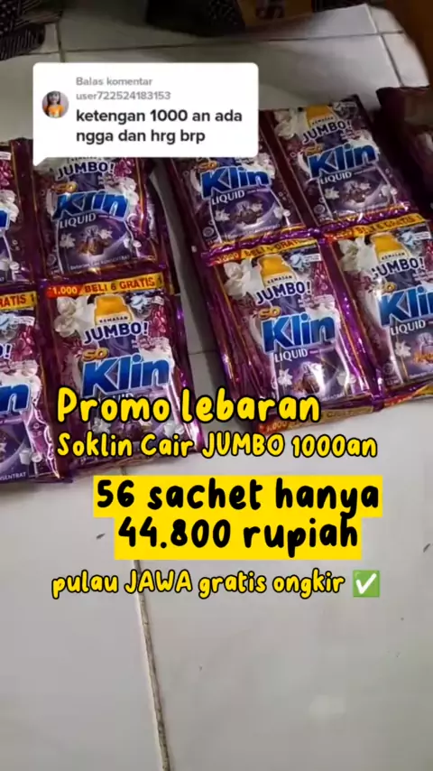 promo lebaran dari soklin liquid cair jumbo 1000an paket 56 sachet cuma 44ribuan โ