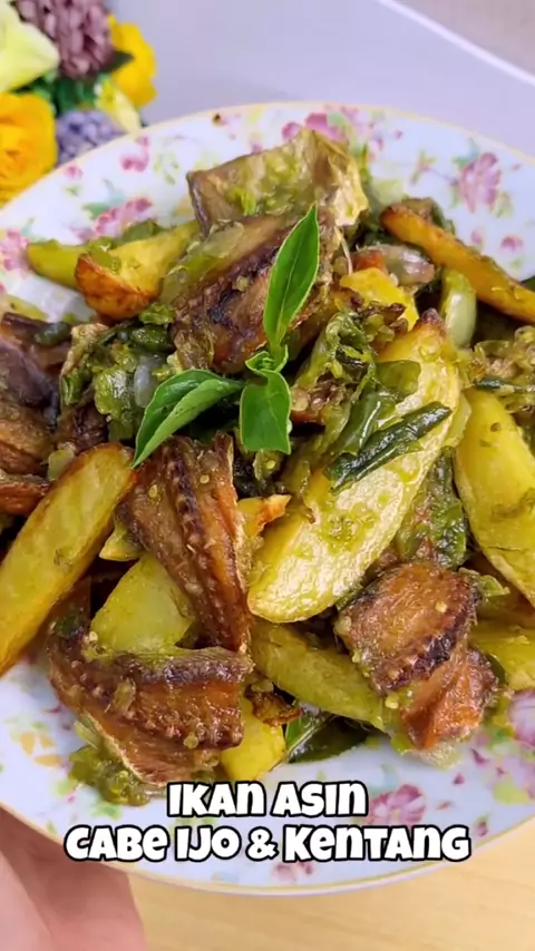 Ikan Asin Cabe Ijo & kentang,,, Cabe keriting ijo Cabe rawit ijo Cabe besar ijo Tomat ijo Bawang merah Kentang Ikan Asin Daun Jeruk Garam Kaldu bubuk Gula #sambal #sambalijo #sambalijopadang #ikanasin #ikanasin