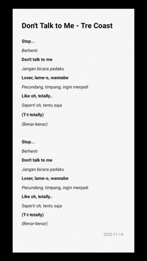 Vid.288 Don't Talk to Me lyrics #stopdonttalktome #lirik #terjemahan