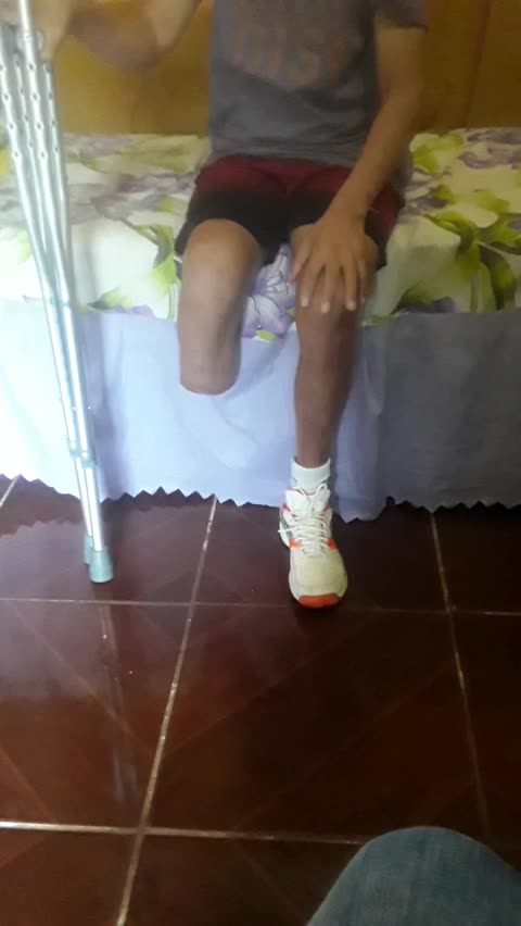 "Amputação Transtibial" treino com "Muletas Axilar" levantar e sentar! Ótimo equilíbrio! Rumo a prótese!