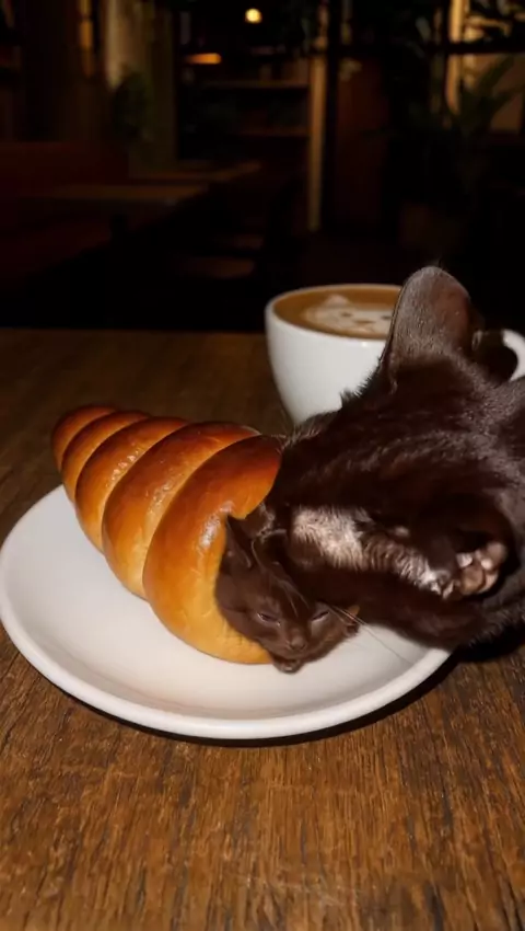 Chocolate Cornet Kitten ๐พ๐ฅโ๏ธ #cat #kitten #cutecat #food #cornetto