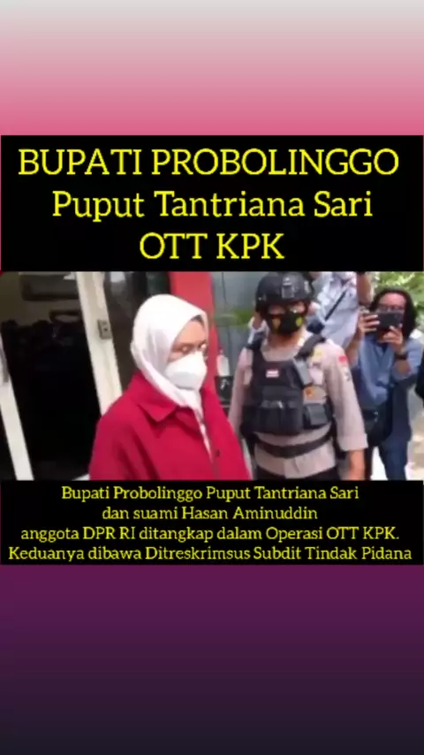 Bupati Probolinggo Puput Tantriana Sari dan suami Hasan Aminuddin anggota DPR RI ditangkap dalam Operasi OTT KPK. Keduanya dibawa Ditreskrimsus Subdit Tindak Pidana Korupsi Polda Jatim kemudian akan dibawa ke Jakarta. Kasus diduga terkait jual beli jabatan di Pemkab Probolinggo. #ott #ottkpk #bupatiprobolinggoott #jualbelijabatan