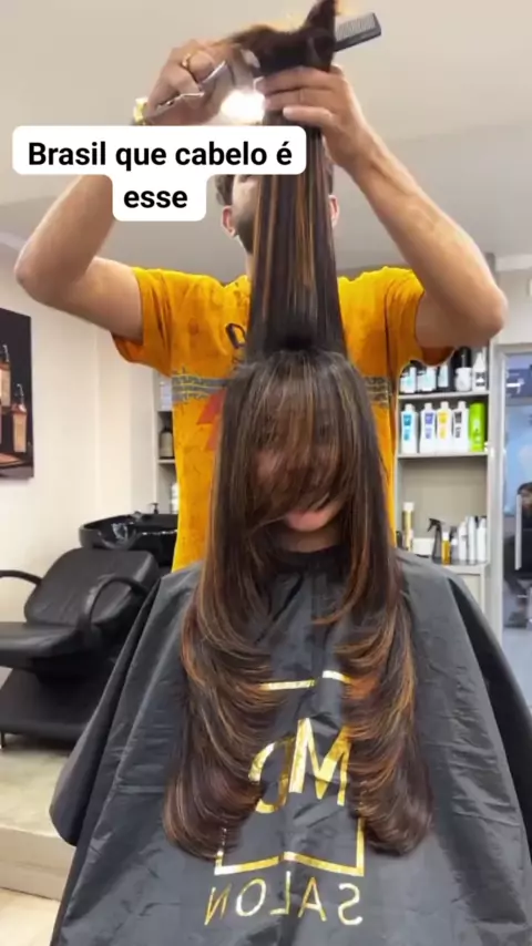 corte em cabelo liso #cabeleireiro #HairStyle #Kawaiagosto #luzes