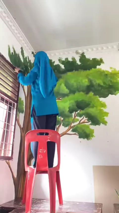 Udah ya nak, jangan request beli kipas angin lagi. Nanti kalau pas di dalam kelas kalian kepanasan, beteduh aja di bawah pohon ini (Pojok Baca) Sambil baca buku yaaa nakku😍👌🏻#guru#guruindonesia#gurusenibudaya#gurucantik#gurulukis#melukis#gurumelukis#gurukeren#guruhits#guruviral#gururandhawa#guruku#walikelas