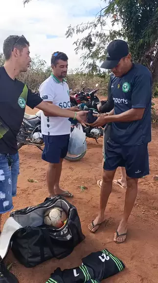 O treinador entregando o uniforme aos jogadores #futebol #varzea #treinador #jogador #campoalegrefc