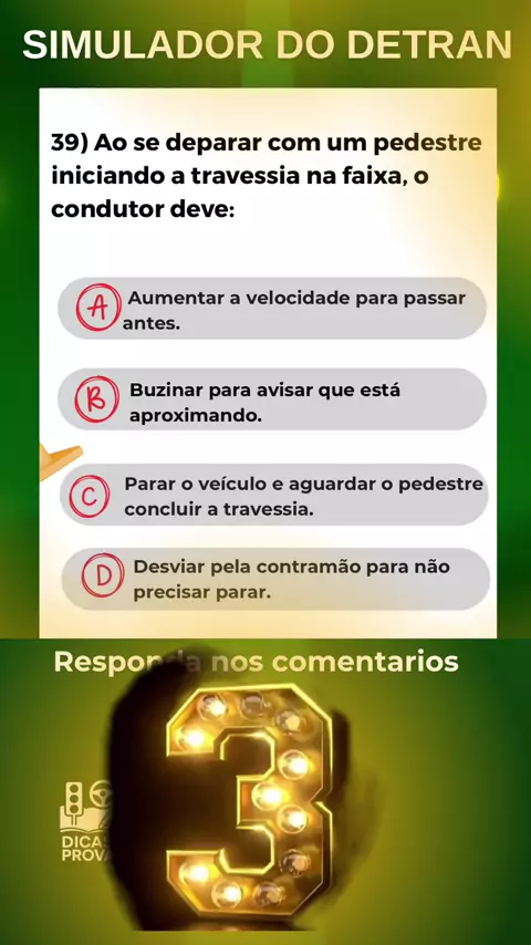 39) Ao se deparar com um pedestre iniciando a travessia na faixa, o condutor deve: #detran #autoescola #instrutor