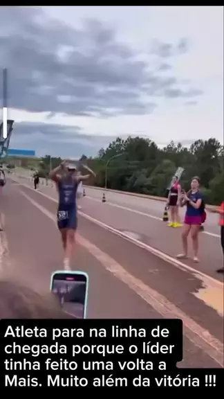 O esporte é gigante! 🏆✨ Cena inacreditável no triatlo em Cascavel, Paraná! O líder da prova parou antes da linha de chegada ao perceber que o segundo colocado tinha errado o caminho. Em vez de garantir o ouro fácil, ele esperou o adversário se recuperar para disputar a vitória com justiça. Isso é Fair Play de verdade! 🤝🔥 A vitória passa, mas o caráter fica. Que exemplo! 🙌 #triatlo #espiritoesportivo #fairplay #cascavel #exemplo